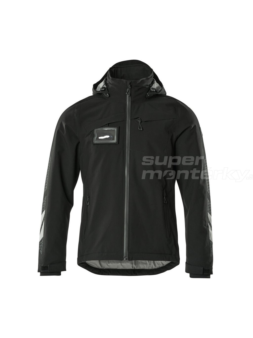 Zapínanie na zips s vnútornou klopou, ktorá chrání pred vetrom. Extra viditeľnosť vďaka reflexným prvkom. Podlepené švy. Vnútorné vrecko na zips. Odnímateľný držiak na ID karty. Predné vrecká na zips. Rebrované manžety.Ripstop materiál.